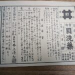 2025年5月18日 / 最終更新日時 : 2025年9月21日 源田 定之 歴史 目洗い薬の効能書 効能書が2種類でてきました。 時期は 登録商標とありますので明治33年(1900年)以降、井上清七の上に「薬剤師」とありますので大正後半、昭和のはじめ頃と思われます。 こちらは株式会社とありますので戦後になります。デザイ […]