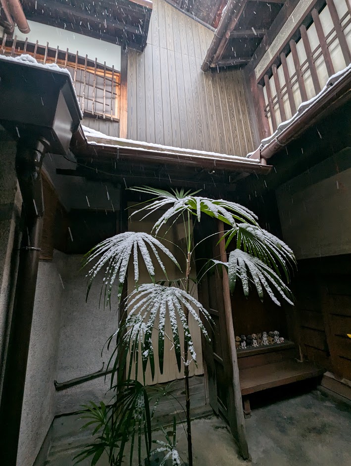 町家は夏向きにできているので生活するのには少々工夫がいります。不便たと感じるところですが、京の様な雪の朝を静かに迎えると