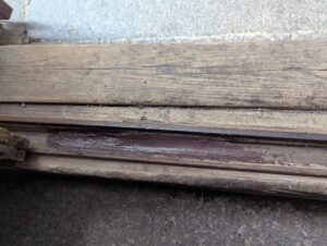 作業の方は、思いのほか痛みが進んでいたので型枠に納めて接着剤が固まるのを待つことにしています。この場所は柱の痛みも進んでおり屋根改修の時に改修工事を予定しています。大掛かりな工事になると思います。
