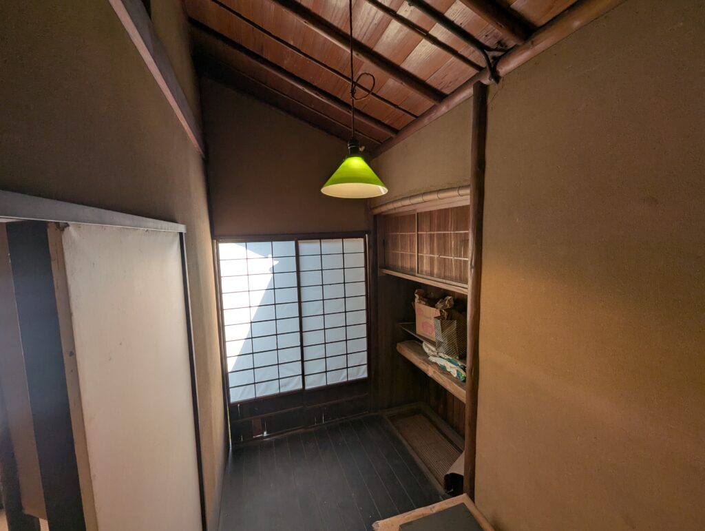まずは電気を通して照明が点くように。元来、茶室には照明は不要なのだろうが作業をする上では必要であり、先人が既に配線してくれているので復活してみようと初めに取り掛かります。この家の修理箇所は他にも多くあるのだが「茶室」は興味レベルが高く優先してしまいますね。