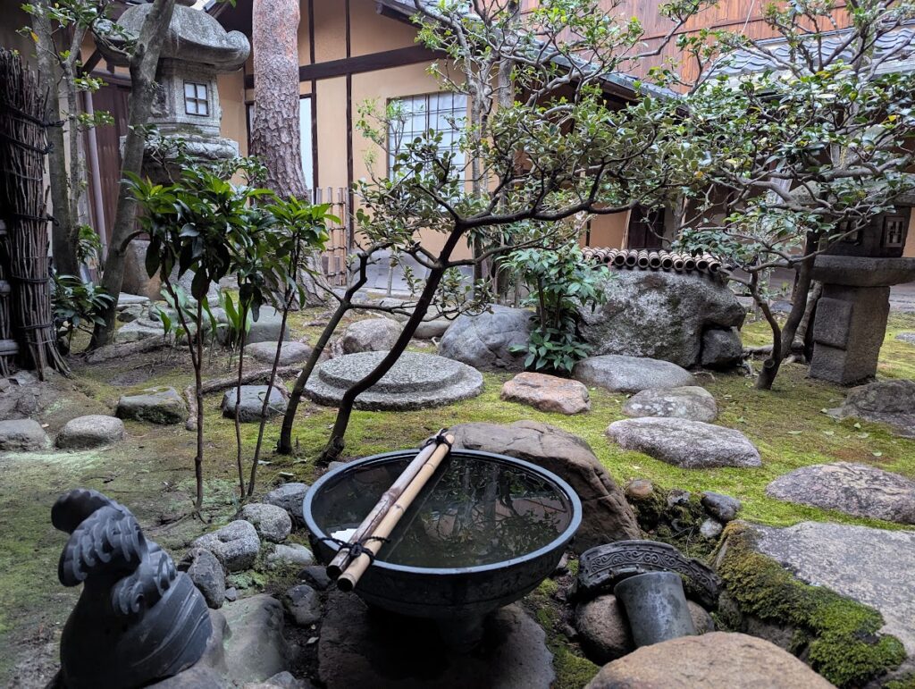 茶庭は小川治兵衛という明治時代に活躍された有名な庭師さんの作庭と断言されていました。設えから分かるそうです。でその流れから茶室は藪内流かもしれないとの話しです。茶室の謂れについては気になるところなので一つ情報としてメモしておきます。