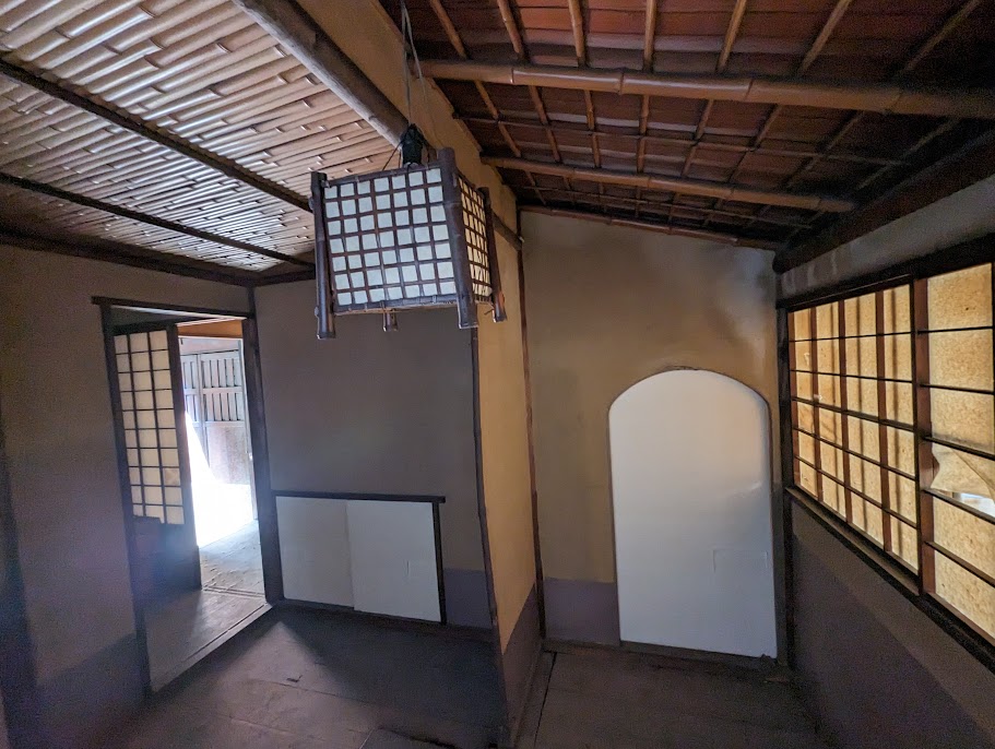 この茶室は奥まった場所にあるため、道行く人のガラガラ音や話し声も聞こえない静かな空間です。窓も多く明るいのもお気に入りポイント、お茶をしなくても一人静かになりたい時に「引きこもる」のにいい場所です。