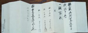 新政府の調達金提供にたびたび務めたため新政府より、明治3年(1870年)褒賞状をもらっています。