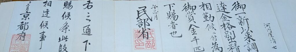 民部省からの褒賞状