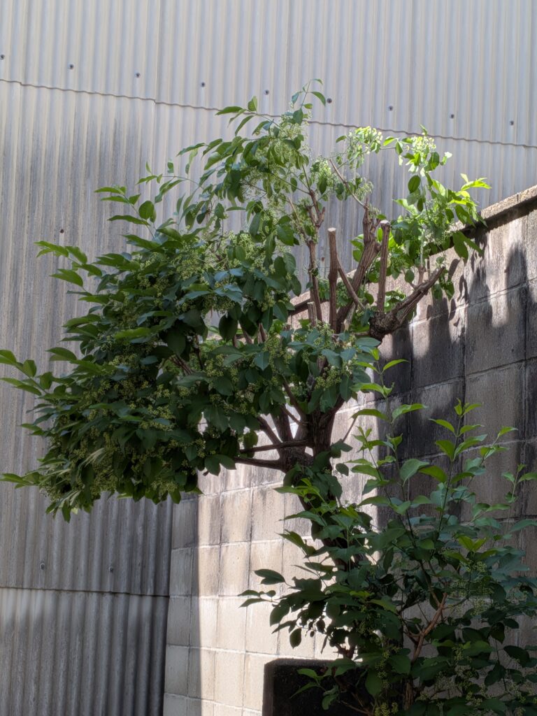 この樹は毎年枝を刈込みますが勢いがあるのか、すぐに元の樹形にもどります。