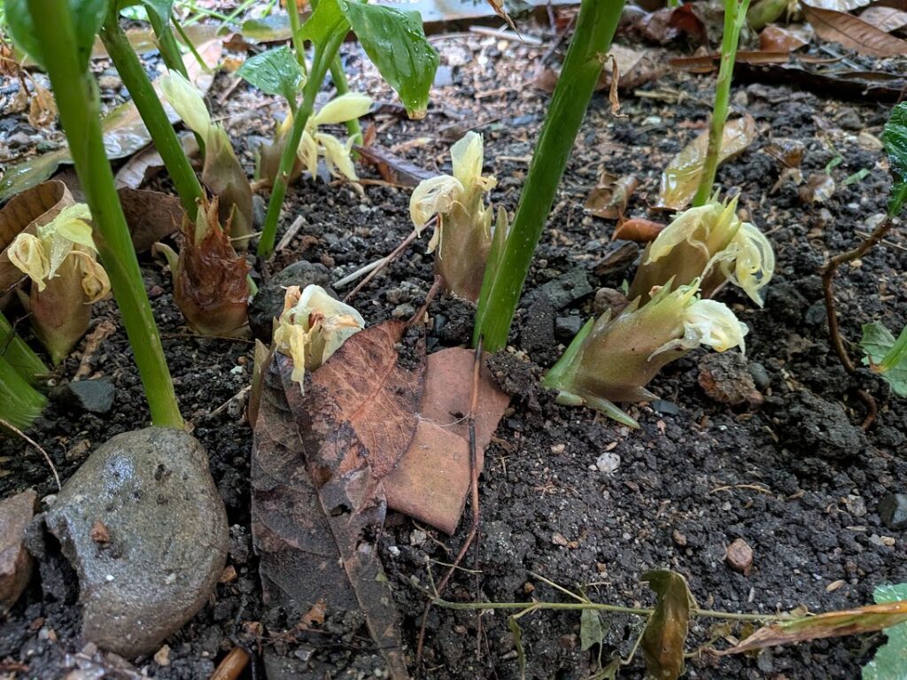 こちらも蔵の横にたくさんの芽が出ていました。ミョウガです。