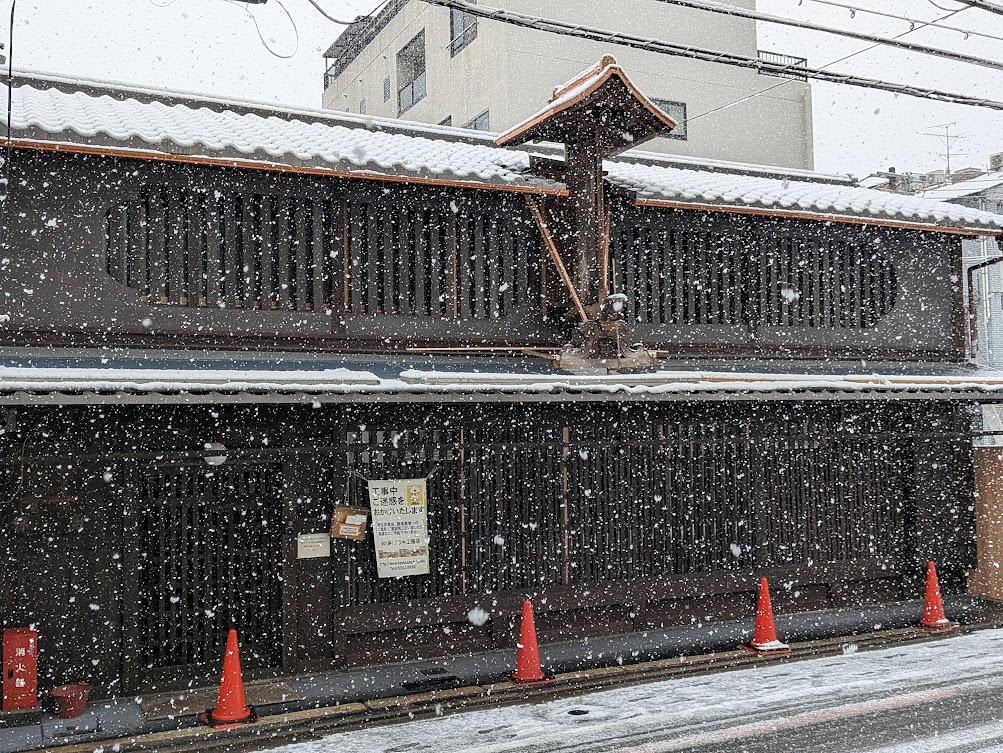 2026年2月9日 / 最終更新日時 : 2026年2月9日 源田 定之 修繕 工事の様子11 終盤の工事の様子です。 雪の日は外の工事がお休みです。下屋の瓦、樋工事などが進んでいません。 中は電気工事が進んでいます。夜に照明を付けてみました。玄関灯が新しくなっています。 京町家「井上清七薬房」をもっと見る 購読すると最新の投稿がメールで送信されます。 メールアドレスを入力... 購読