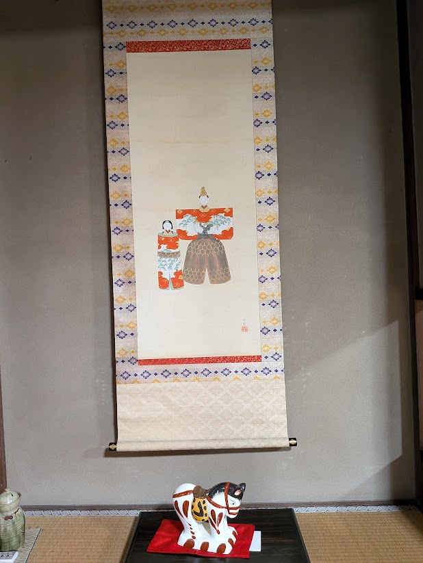 座敷にひな人形を飾りました。昨年は3月に入ってからの設えでしたが今年は床の間の軸交換に合わせて座敷に飾りました。
