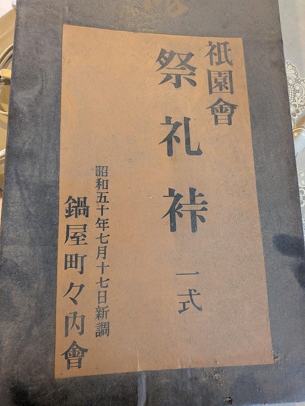荷物の整理をしていましたら「祇園祭で使用した裃」が一式でてきました。