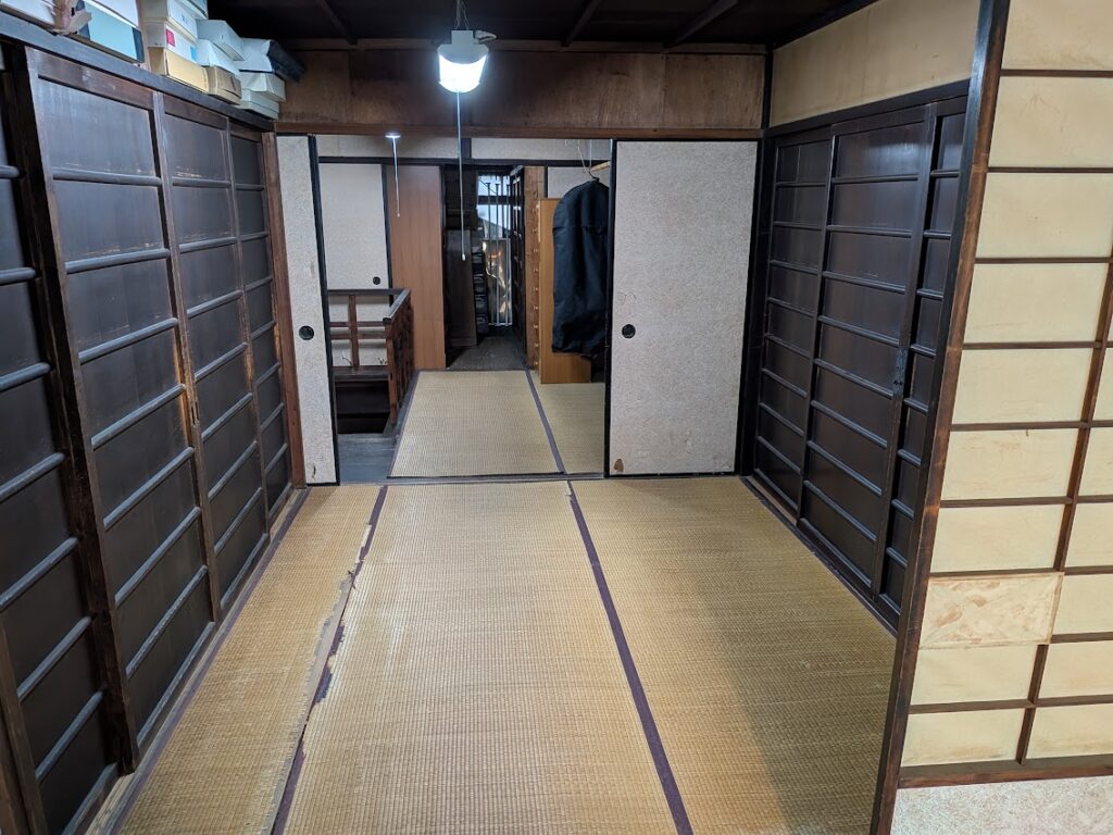隣はハシリの吹き抜けがあるため細長い間取りです。この二階には台所にある箱階段から上がります。